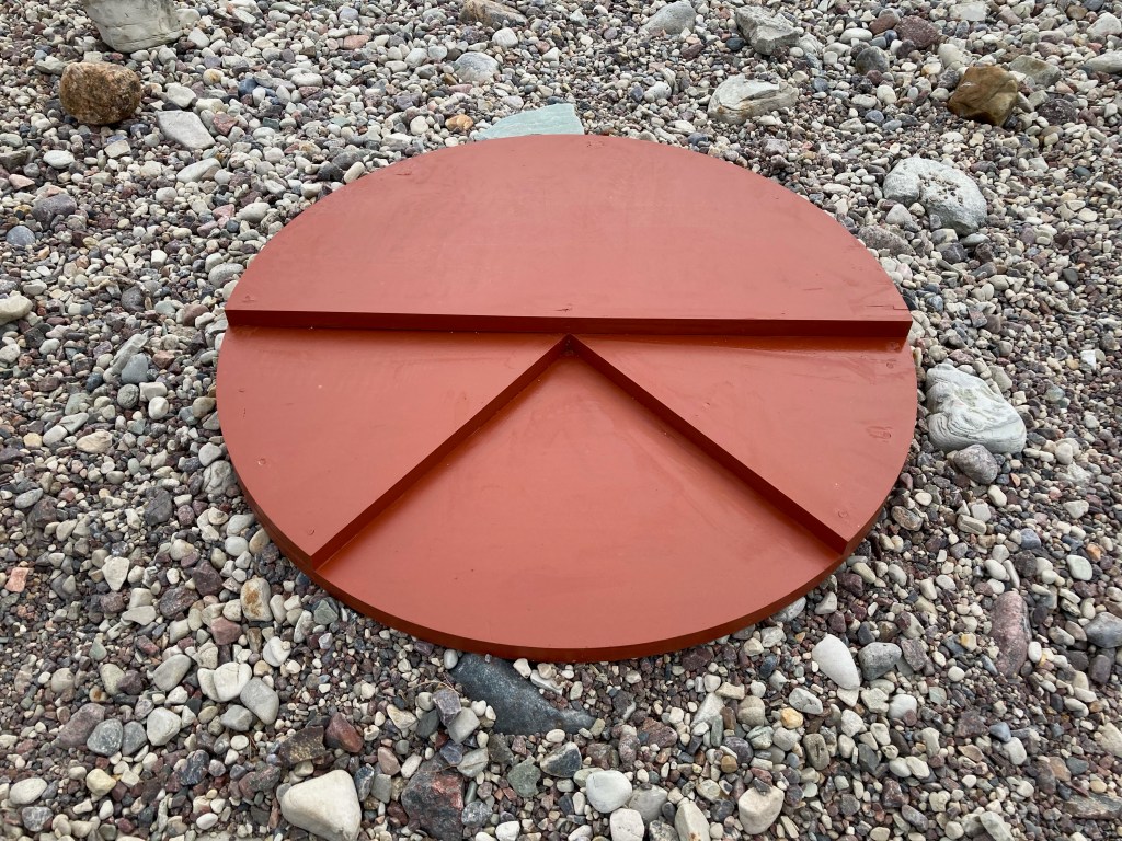You are now standing at Trollskogen’s northernmost outpost, facing the horizon. The cape ends here, and far away on the other side of the sea is Oxelösund. At the summer solstice on June 21, you can see the sun set at 9:52 PM and rise at 3:56 AM in front of you during the shortest night of the year. Darkness slowly comes closer and at the autumnal equinox on September 23, the sun sets directly in the west at 18:50 and rises directly in the east at 06:40. You find the directions on the round disc in front of you.
