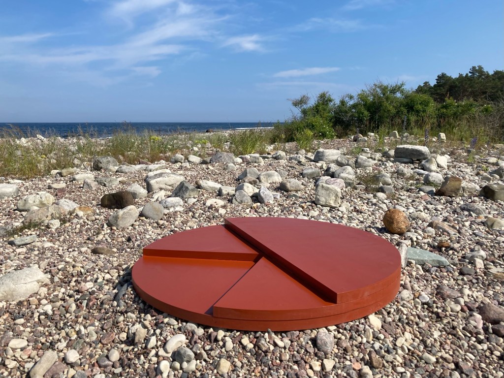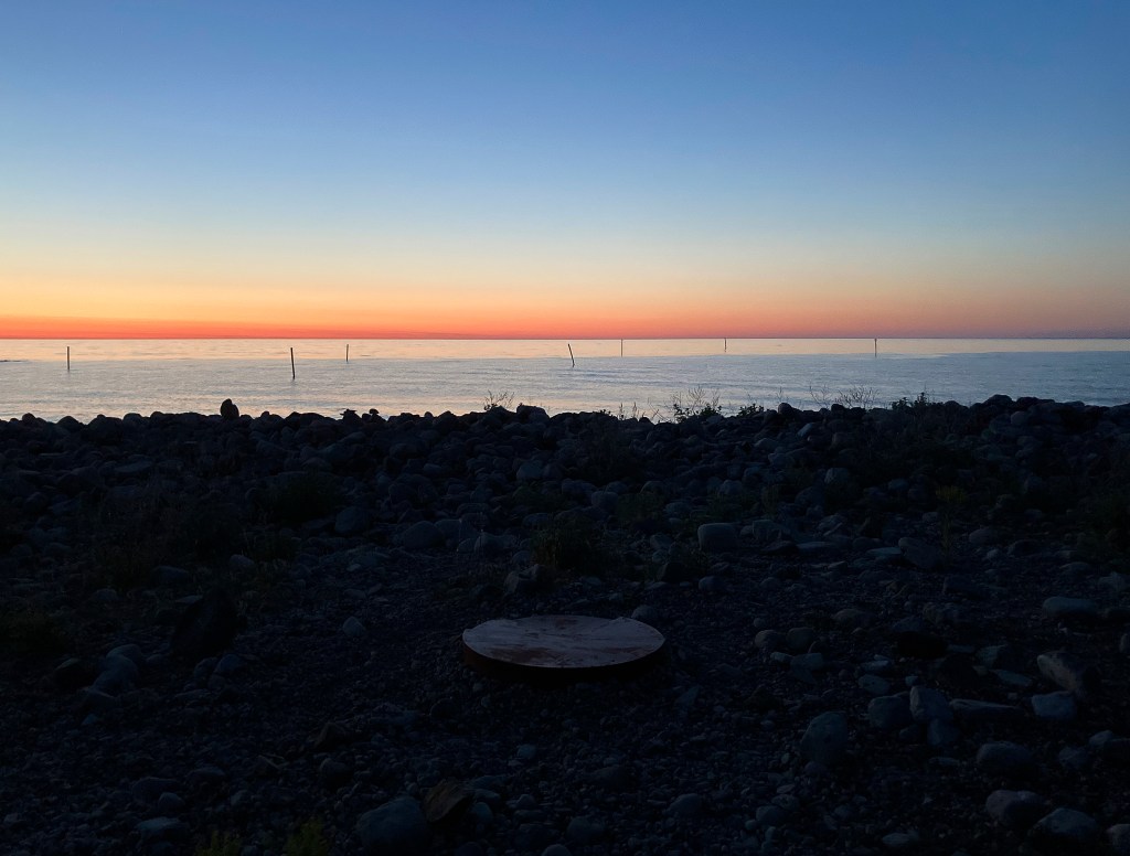 At the far end towards the sea, I will show the work “Vändpunkt” (Turning Point). Out here comes the one who follows the path as far as it goes. Through the pine forest, along the sea, past the Iron Age graves and the old cult site. The work points out where on the horizon the sun sets and rises during the shortest night of the year, and how it then moves until the end of the exhibition near the autumnal equinox.